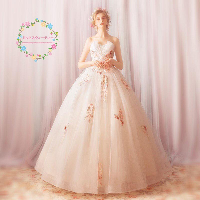 カラードレス ロング カラードレス 結婚式 花嫁 演奏会 ピンク 白 ビスチェ 花いっぱい 二次会 パーティードレス 編み上げ ウェディングドレス ウエディング Y アトランティス 通販 Yahoo ショッピング